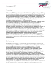 Die Landesjugendordnung der DLRG-Jugend Württemberg sieht die Platzierung des JETs, auch durch Freigabe des LV-Rats des Stammverbands, grundsätzlich auf Bezirksjugendebene vor. Dies ist dadurch begründet, dass der Wasser-Rettungsdienst in den meisten Bezirken ebenfalls auf Bezirksebene angesiedelt ist. Das JET soll sinnvollerweise auf der Gliederungsebene angesiedelt sein, in welcher auch der Wasser- Rettungsdienst platziert ist. In Einzelfällen kann dies auch eine Ortsgruppe sein. Vereinzelt kann das JET auch bei der Leitung Einsatz der entsprechenden Gliederungsebene angesiedelt sein, die Gliederungsjugend soll diesen Prozess aber sowohl durch Personal, als auch durch pädagogisches Fachwissen unterstützen (vgl. Punkt 3 Personelle Ausstattung). Das JET stellt eine Übergangsmöglichkeit zwischen Jugend und Stammverband dar. Entsprechend ist es auch zu betrachten und muss dadurch zwingend, sowohl von der Jugend als auch vom Stammverband, finanzielle, materielle und personelle Unterstützung erfahren.